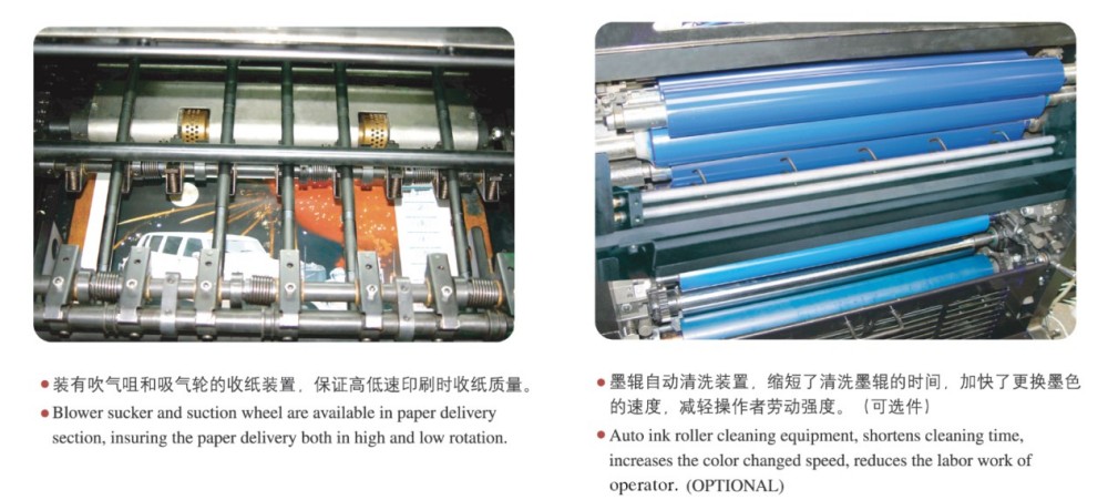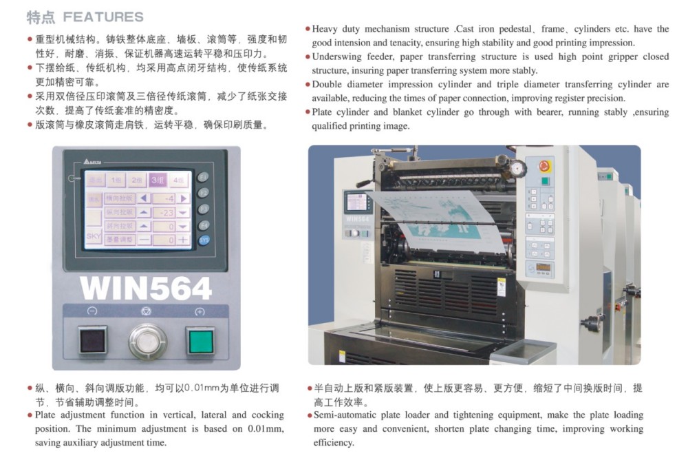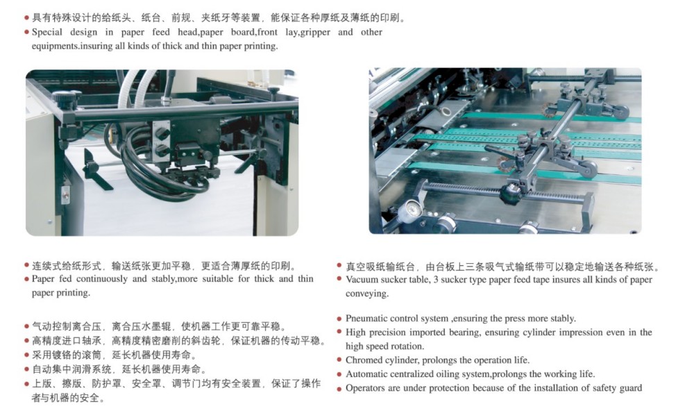 fabrica esta impressora offset premium de quatro cores para folhas soltas, que chamamos de impressora offset de quatro cores para impressão de curta tiragem A2. Ele foi desenvolvido para imprimir em folhas A2 e maiores e produz impressões de imagens de alta qualidade em alta velocidade sem lentidão, perfeitas para necessidades de impressão de pequenas tiragens. É bastante versátil, honestamente – você pode passar quase qualquer substrato nele. Isso significa que é ótimo para fazer itens comerciais e embalagens de médio a alto padrão, como etiquetas autoadesivas, cartões de visita de alta qualidade, brochuras, capas de livros e inserções coloridas.